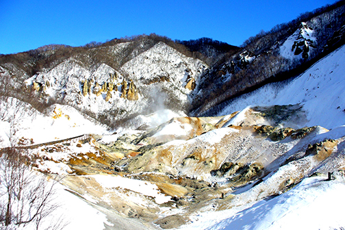 Transfer to Noboribetsu, visiting Noboribetsu Date Jidaimura theme park and Jigokudani (Hell Valley)