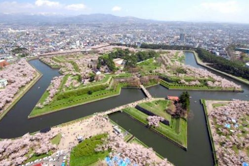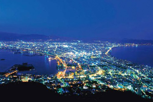 From the observatory, you can enjoy panoramic views of Mount Hakodate, the Tsugaru Strait, the Yokotsu Mountain Range, and the star-shaped grounds of the Special Historic site, Goryokaku.