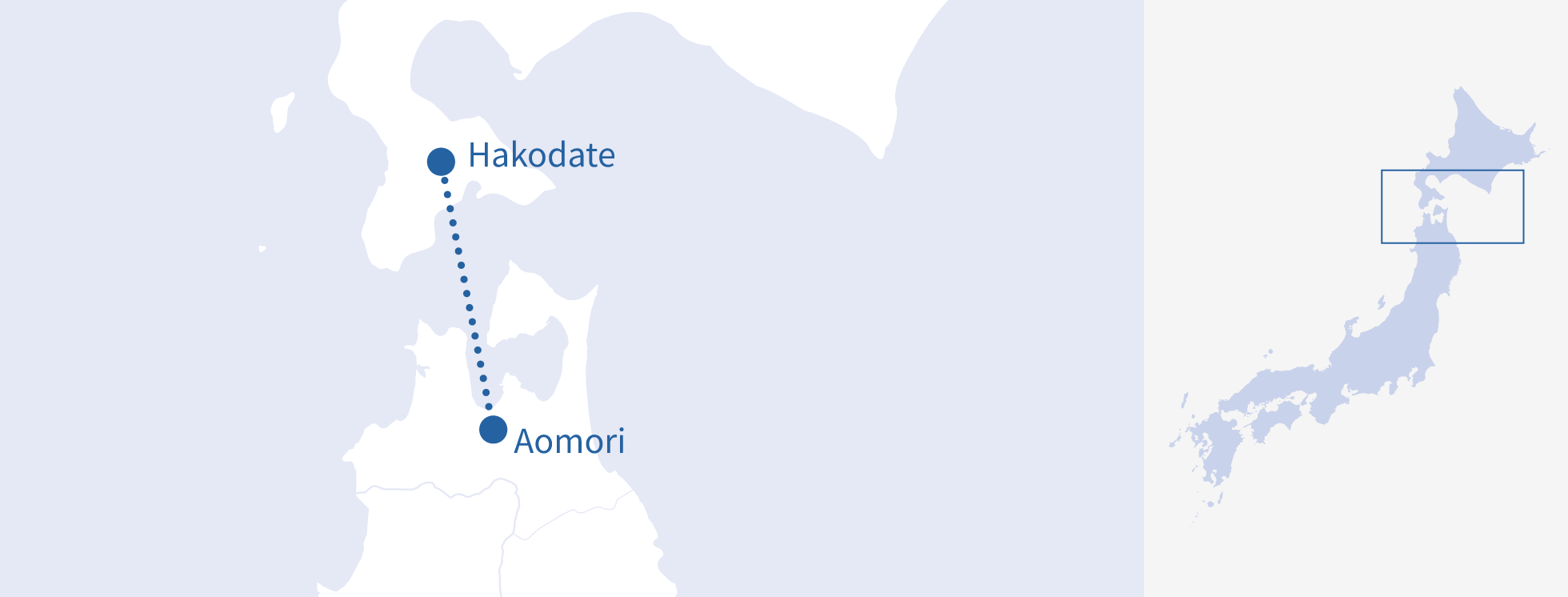 The Hokkaido Shinkansen connects Aomori City with Hakodate City across the Tsugaru Strait, covering the distance in under an hour at high speed.