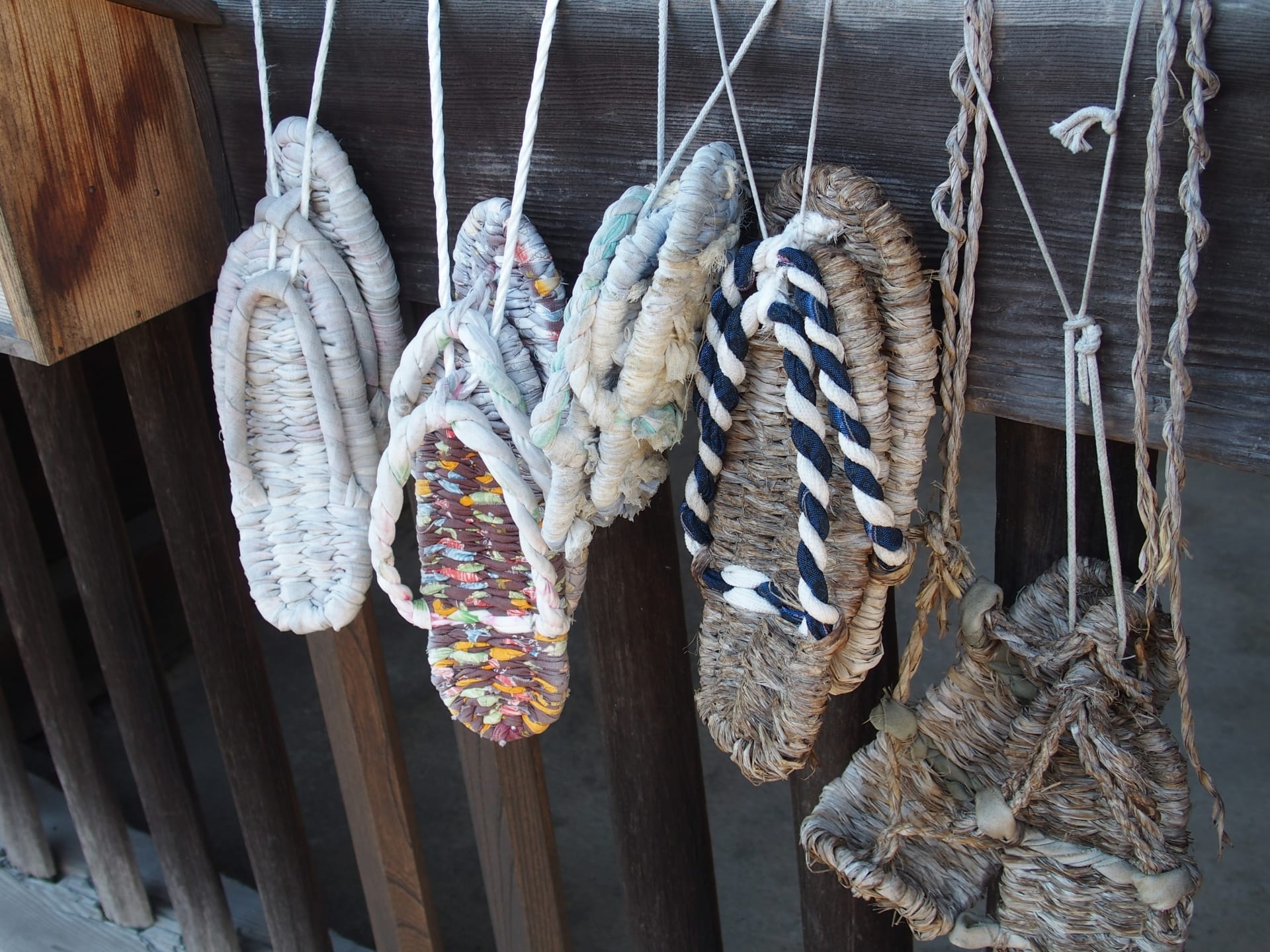 Waraji sandals reinforced with scraps of cloth, reflecting the market’s roots in practical, everyday craftsmanship