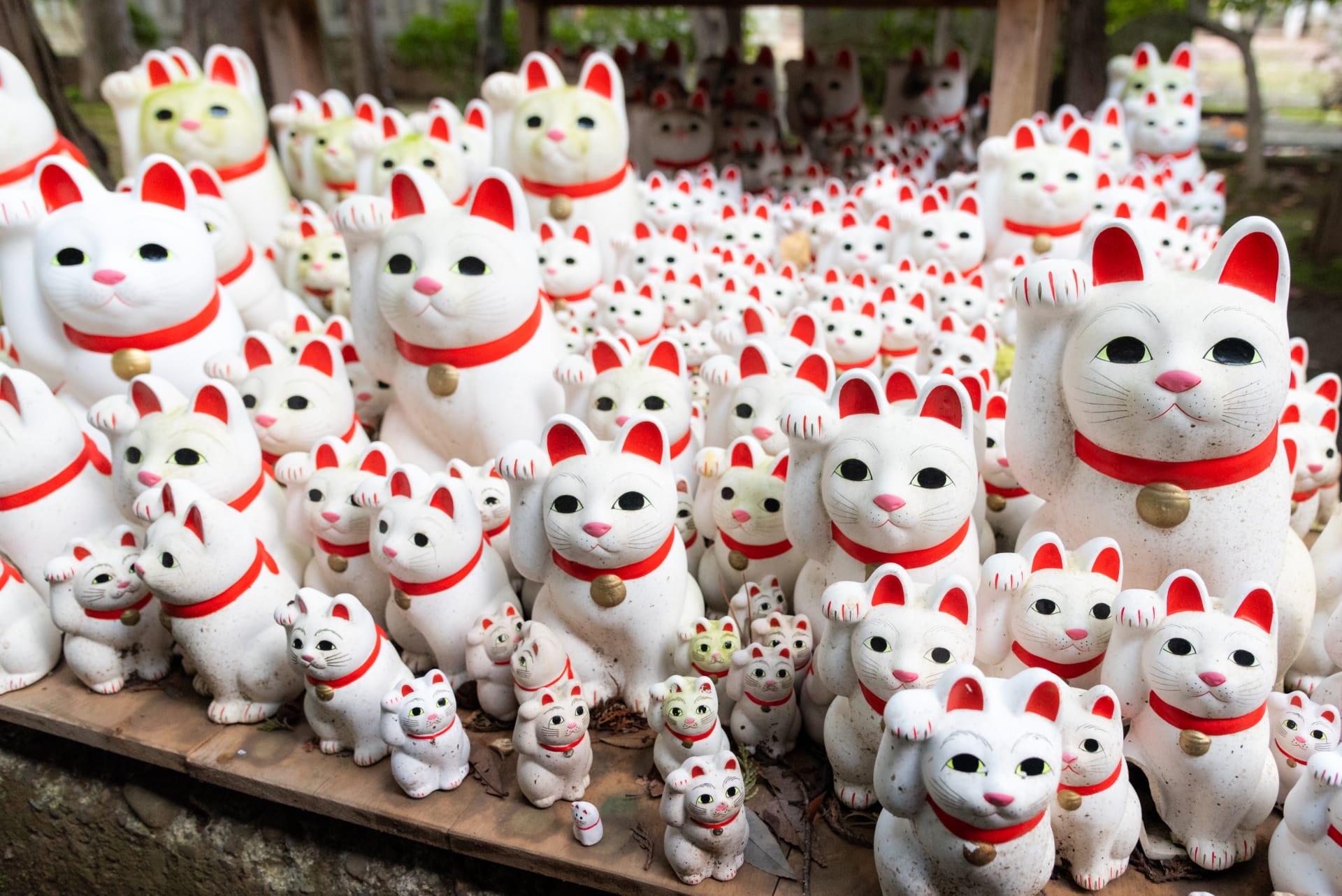 Rows of maneki-neko figurines line the grounds of Gotoku-ji Temple, quietly beckoning good fortune to visitors
